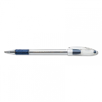 R.S.V.P. Stick Ballpoint Pen, 1mm, Trans Barrel, Blue Ink, Dozen