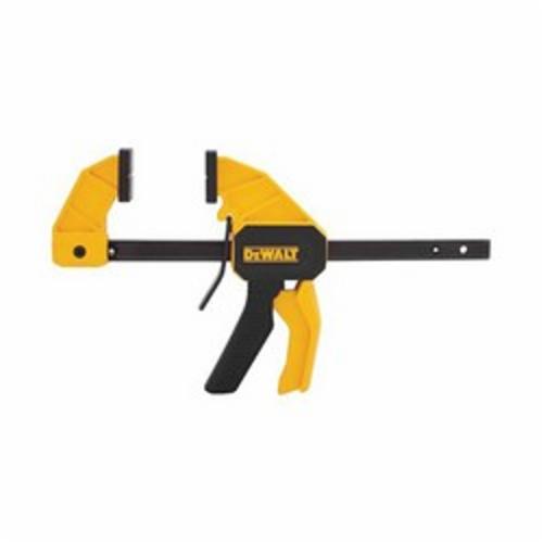 DeWALT Trigger Clamp, 1-Handed Medium, 12 in Clamping Capacity, 2-7/16 in Throat Depth, 100 lb Clamping Pressure, Nylon Handle, Steel Bar, Black/Yellow