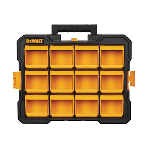 DeWALT Flip Bin Organizer, 3-7/8 in Width, 17-3/4 in Depth, 13-7/8 in Height, 12 Compartments, 15 lb Capacity, Ergonomic Handle, Polycarbonate, Black/Yellow