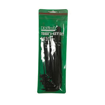 Eklind 10714 Long Key Set With Holder, 14 Pieces, T6 to T55 Torx, L-Handle Handle, Alloy Steel, Black Oxide