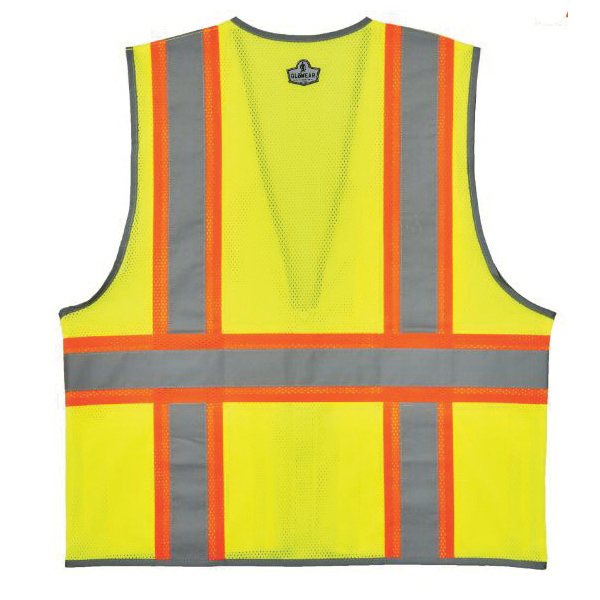 GloWear Vest, 2-Tone Breathable, Series: 8246Z, 2XL/3XL, Lime, Polyester Mesh, 52 to 58 in Chest, Zipper Closure, 6 Pockets, ANSI Class: Class 2, ANSI/ISEA 107-2015 Type R Specifications Met