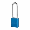 American Lock A1107KABLU Safety Padlock, Alike Key, Blue, Anodized Aluminum Body, 1/4 in Dia x 3 in H x 25/32 in W Polished Chrome Boron Alloy Steel Shackle, Conductive Conductivity